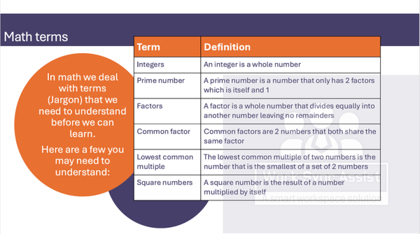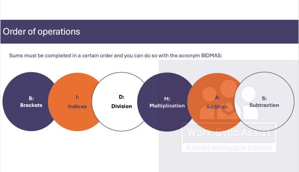 The resource covers understanding different jargon used in Math and technical Math terminology. Order of operations is covered in discovering BIDMAS.