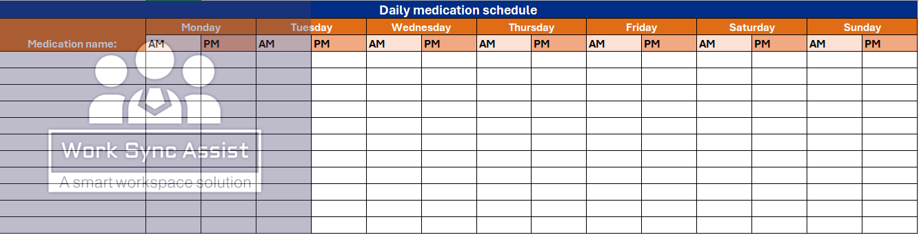 Work Sync Assist logo will be removed on sending download. If you don't have excel you can download the PDF or PNG in the options, this will mean you lose the ability to edit the cells.